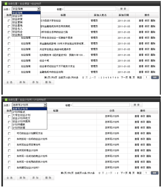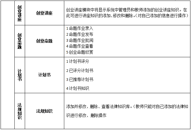 2、包含創(chuang)(chuang)(chuang)(chuang)業(ye)理(li)論知識的學習和創(chuang)(chuang)(chuang)(chuang)業(ye)實戰(zhan)(zhan)訓練(lian)。創(chuang)(chuang)(chuang)(chuang)業(ye)理(li)論知識包括測評(ping)系統、創(chuang)(chuang)(chuang)(chuang)業(ye)課堂、創(chuang)(chuang)(chuang)(chuang)業(ye)講談、創(chuang)(chuang)(chuang)(chuang)業(ye)命題、創(chuang)(chuang)(chuang)(chuang)業(ye)計劃(hua)書、法規知識、網上創(chuang)(chuang)(chuang)(chuang)業(ye)、創(chuang)(chuang)(chuang)(chuang)業(ye)準(zhun)備、創(chuang)(chuang)(chuang)(chuang)業(ye)論壇(tan)。創(chuang)(chuang)(chuang)(chuang)業(ye)實戰(zhan)(zhan)訓練(lian)包含選擇行(xing)業(ye)、注冊公司、人員招聘(pin)、產品(pin)戰(zhan)(zhan)略策劃(hua)、產品(pin)生產、渠道銷售(shou)、促銷、備貨運送等內容。