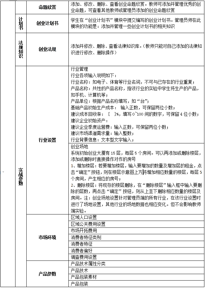 關(guan)鍵詞:大學(xue)生(sheng)創業(ye)模擬(ni)實(shi)訓(xun)(xun)實(shi)戰(zhan)教學(xue)平臺 大學(xue)生(sheng)創業(ye)實(shi)訓(xun)(xun)教學(xue)軟件 大學(xue)生(sheng)創業(ye)實(shi)訓(xun)(xun)教學(xue)系(xi)統 大學(xue)生(sheng)創業(ye)實(shi)訓(xun)(xun)室解決方案