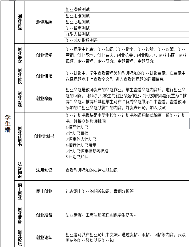 用(yong)戶對象:本教學(xue)軟件適(shi)用(yong)于各專業大(da)學(xue)生(sheng)創業的模(mo)擬(ni)實訓。