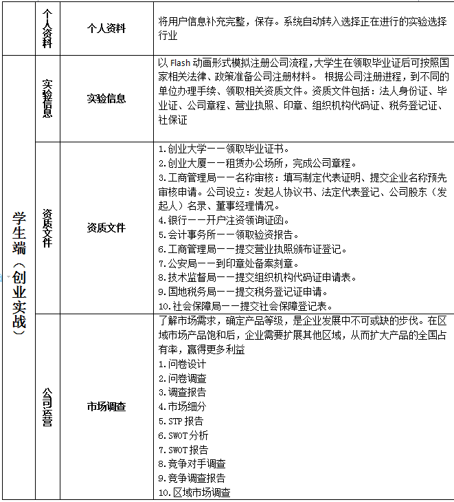 學(xue)生端模擬(ni)現(xian)實(shi)創業的步(bu)驟及相關流程進行創業實(shi)驗。